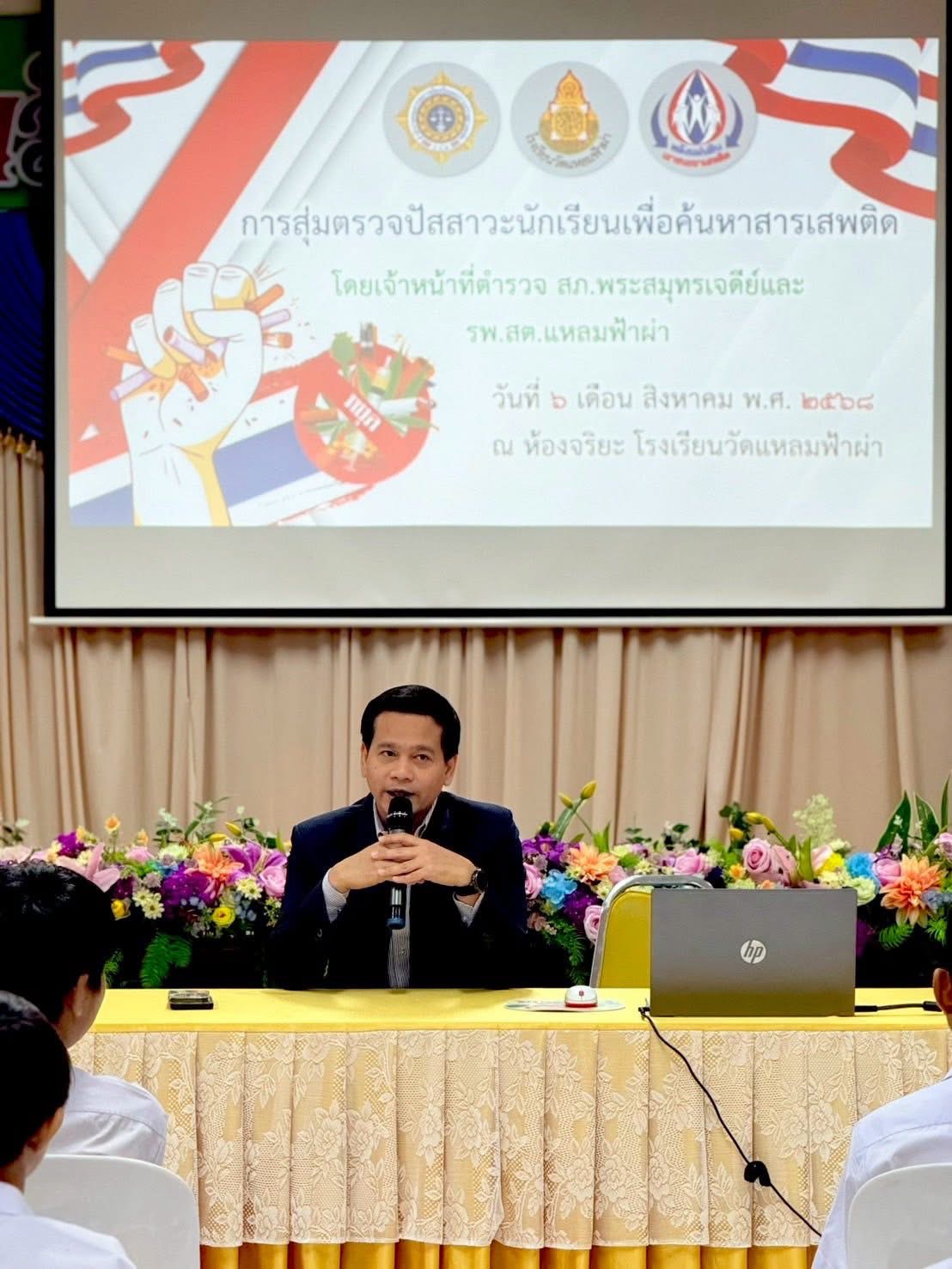 การสุ่มตรวจปัสสาวะนักเรียนเพื่อค้นหาสารเสพติดโดยเจ้าหน้าที่ตำรวจพระสมุทรเจดีย์และ โรงเรียนวัดแหลมฟ้าผ่า